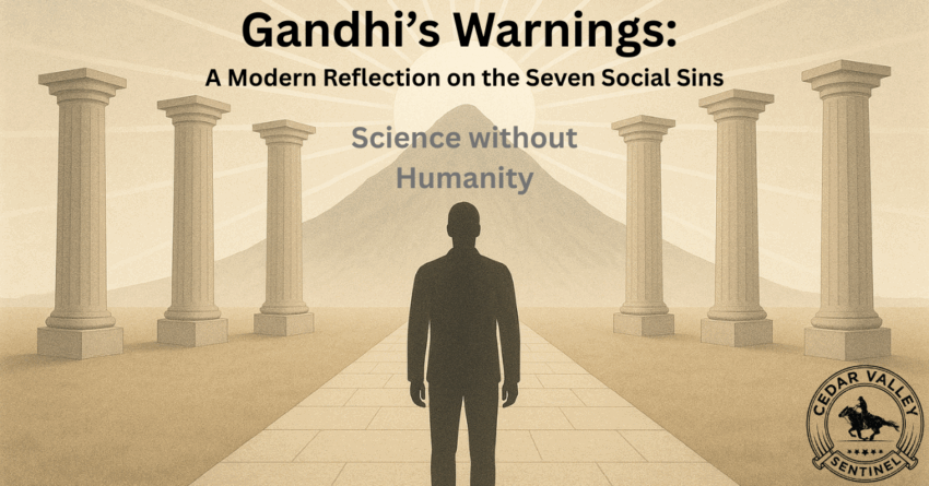 Gandhi warns against “science without humanity,” emphasizing that scientific advancements must prioritize ethical considerations and compassion. Both Stoic and Latter-day Saint perspectives echo this sentiment, advocating for knowledge that aligns with virtue, justice, and accountability to God. Ultimately, any scientific progress should enhance human welfare, not harm it.
