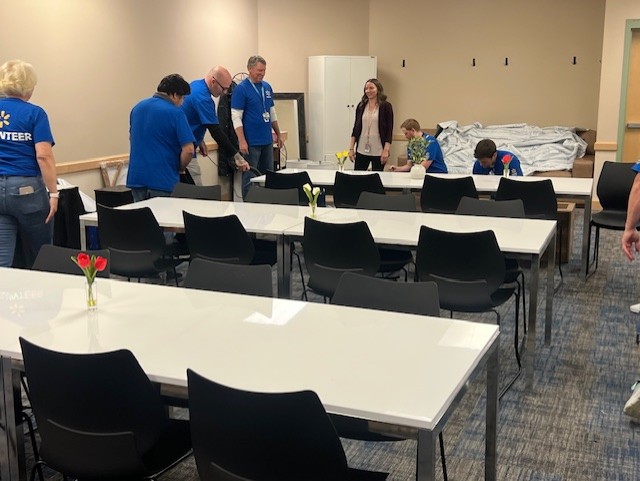 The lounge was designed with a blend of style, comfort and functionality to create an inspiring space where teachers can unwind and recharge, and that celebrates the remarkable influence they have on students. Volunteers from Crayola and Walmart’s Supercenter in South Jordan brought the teachers’ lounge to life with furnishings and items purchased with the donated gift cards. Sixteen associates from the South Jordan store participated in painting the lounge and assembling new furniture.